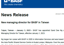 “I am excited to join the BASF team in Taiwan. Building on the existing strong network of customers, partners, and distributors in Taiwan, I am looking forward to further exploring the collaboration opportunities and scale BASF Taiwan to the next level,” said Sand Dee Ng.