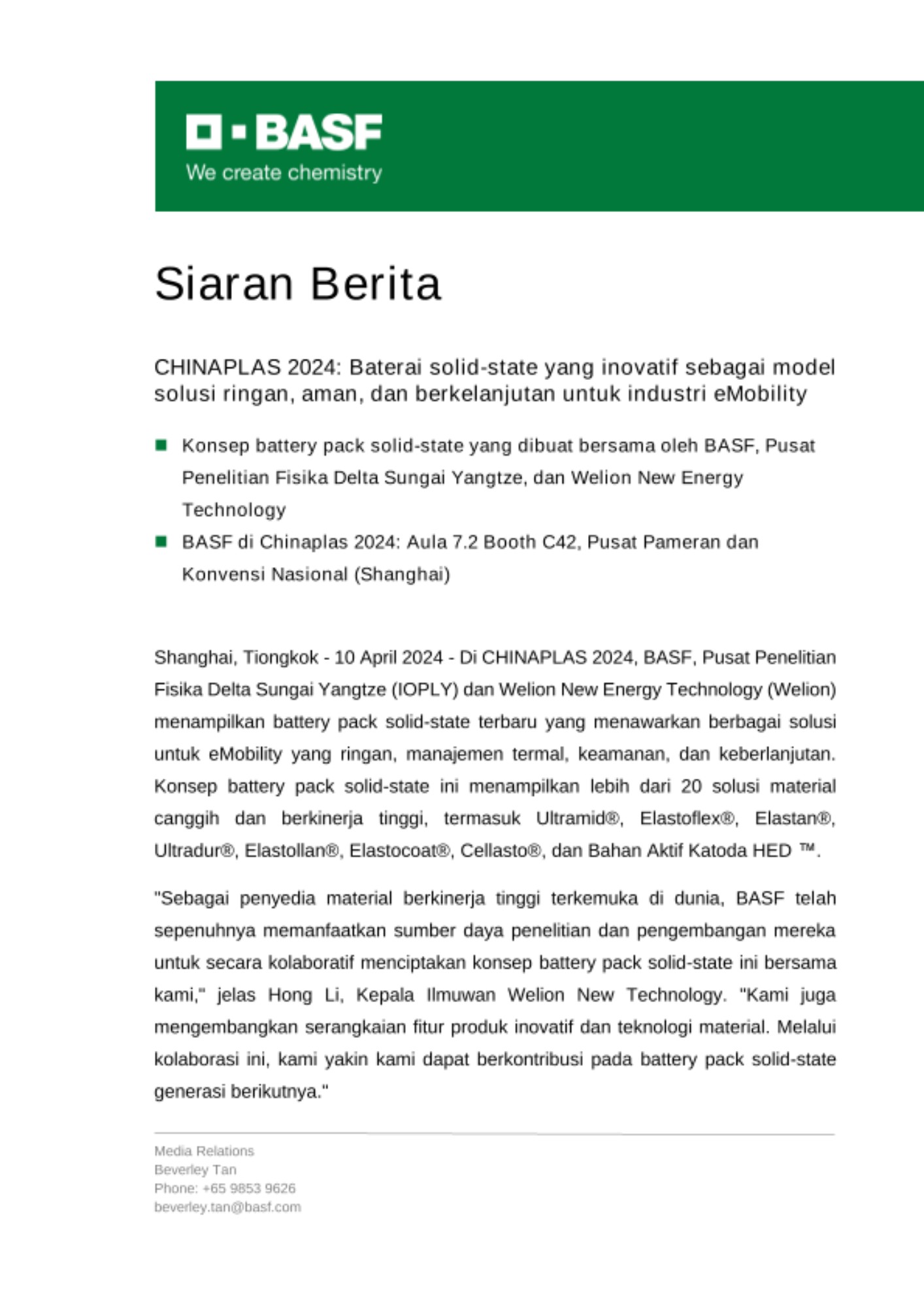 Untuk foto-foto pers dan pembaruan tentang BASF di CHINAPLAS 2024, klik di sini.