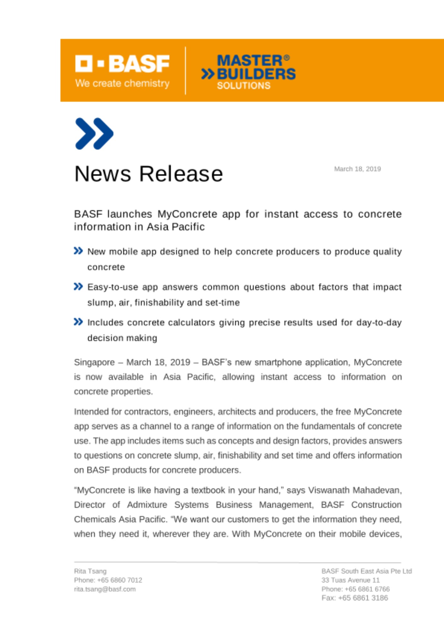 For additional information about MyConcrete app, BASF product performance, technical information, or to locate a BASF representative, visit www.master-builders-solutions.asiapacific.basf.com/