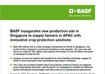 - New €40 million site is a key strategic investment for BASF in Singapore, the fourth of the company’s production facilities in the republic. The new site will serve as a hub for the region, and support the needs of over 20 million hectares of farmland in Asia Pacific.