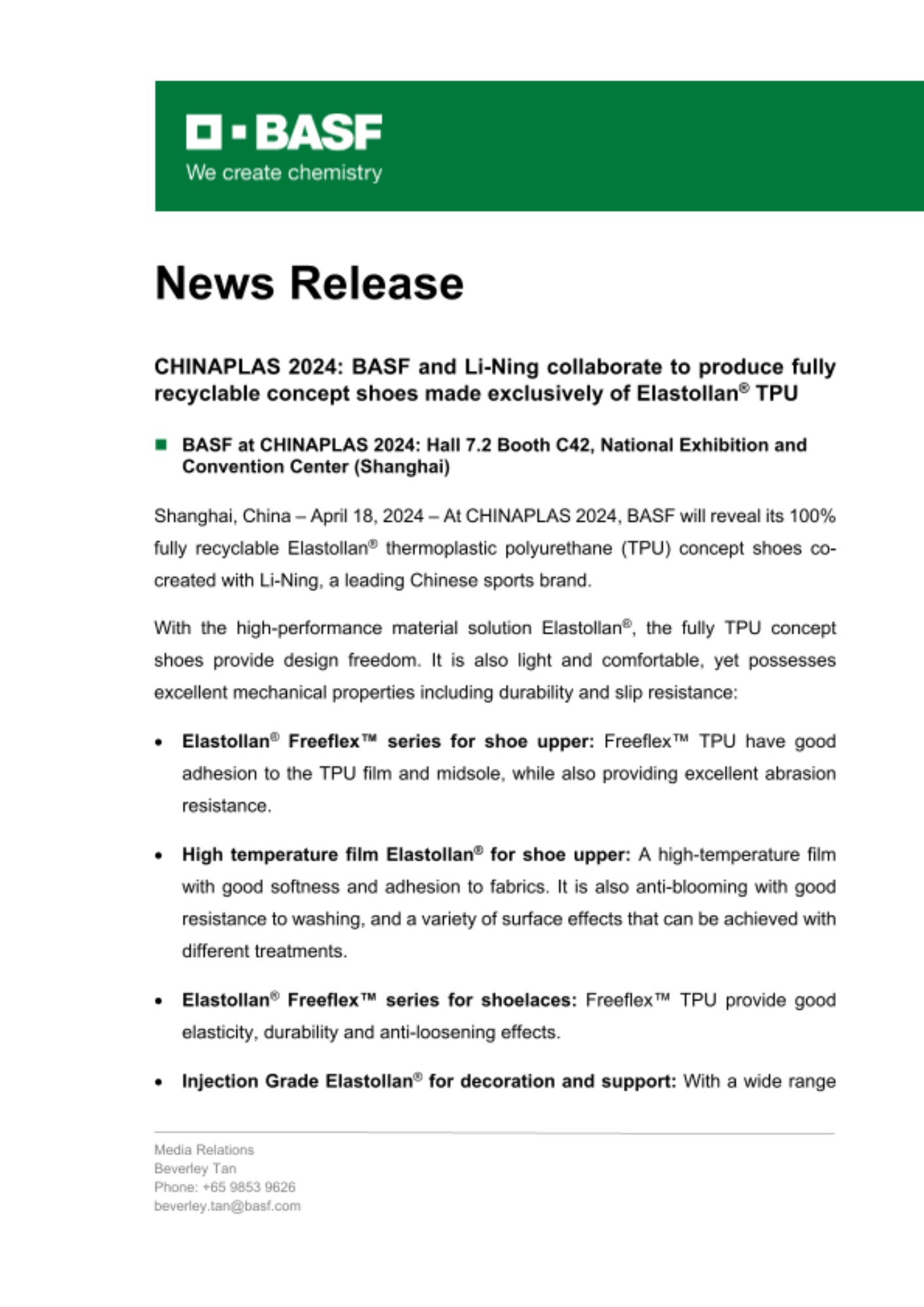 - BASF at Chinaplas 2024: Hall 7.2 Booth C42, National Exhibition and Convention Center (Shanghai)