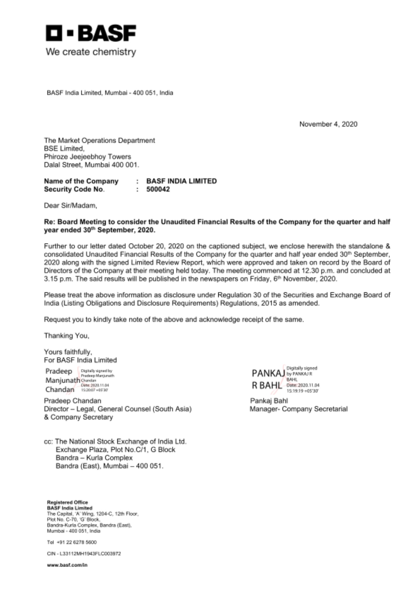 BASF India Limited announces Q2 FY 2020-2021 results