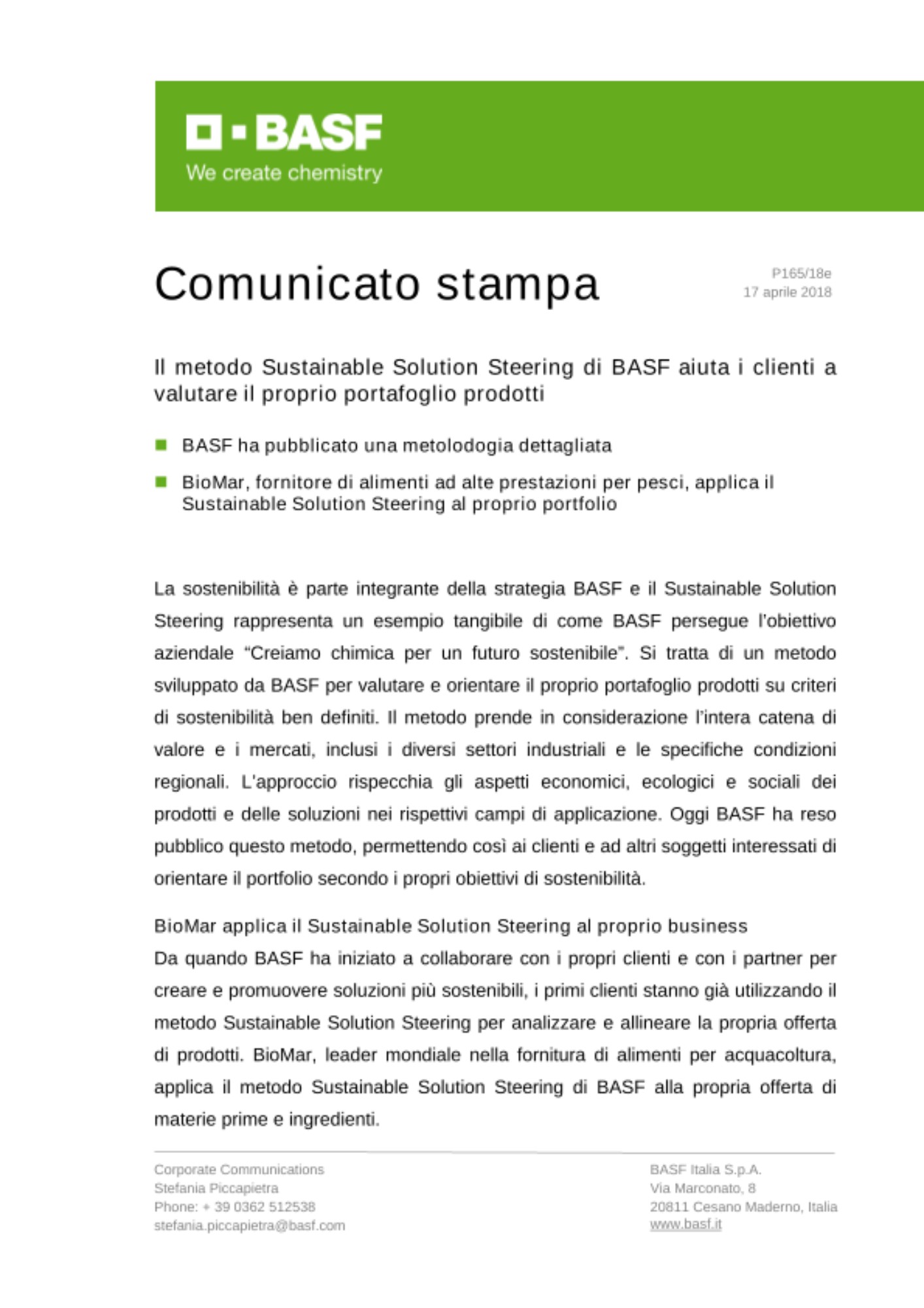 BASF ha applicato questo metodo dal 2012 per analizzare, valutare e orientare il proprio portfolio. “La nostra esperienza con Sustainable Solution Steering dimostra che si tratta di uno strumento efficace per soluzioni che apportano un importante contributo per la sostenibilità”, ha commentato Dirk Voeste, Vice President Sustainability Strategy di BASF. “È un metodo che ci permette di raggiungere gli ambiziosi target di sostenibilità che ci siamo prefissati e al contempo di supportare i nostri clienti con soluzioni sostenibili uniche”.