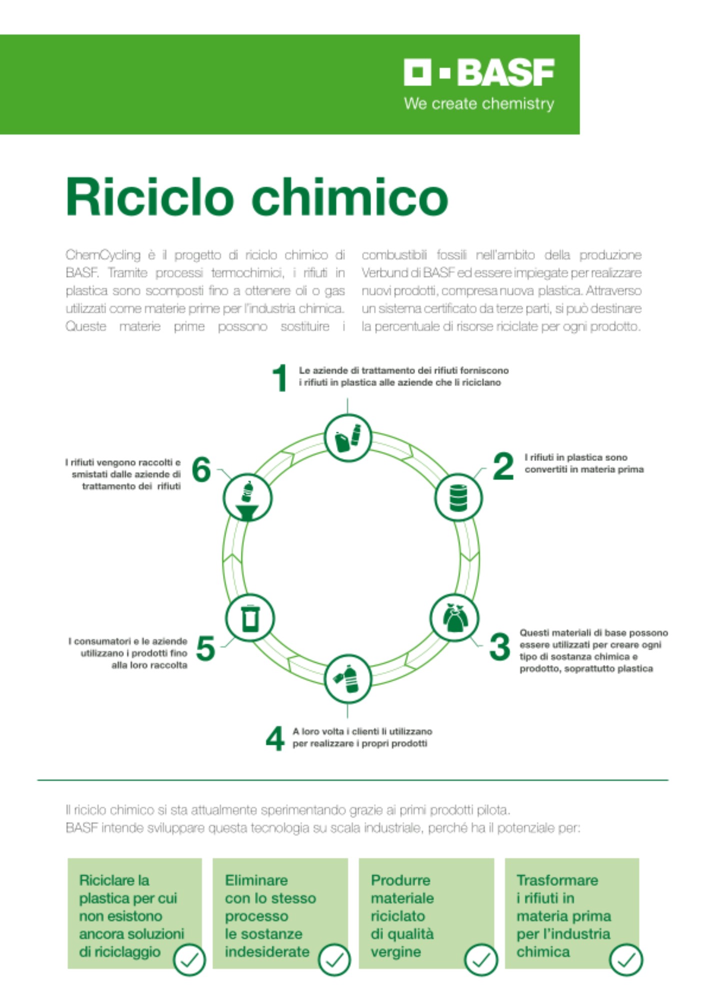 Poiché il riciclaggio meccanico è limitato da un incremento dei residui presenti nel materiale a ogni ciclo, un team interdisciplinare di BASF ha raccolto questa sfida e ha studiato il progetto ChemCycling.