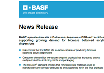 BASF’s production site in Rokuromi, Japan now REDcert2 certified, supporting growing demand for biomass balanced acrylic dispersions