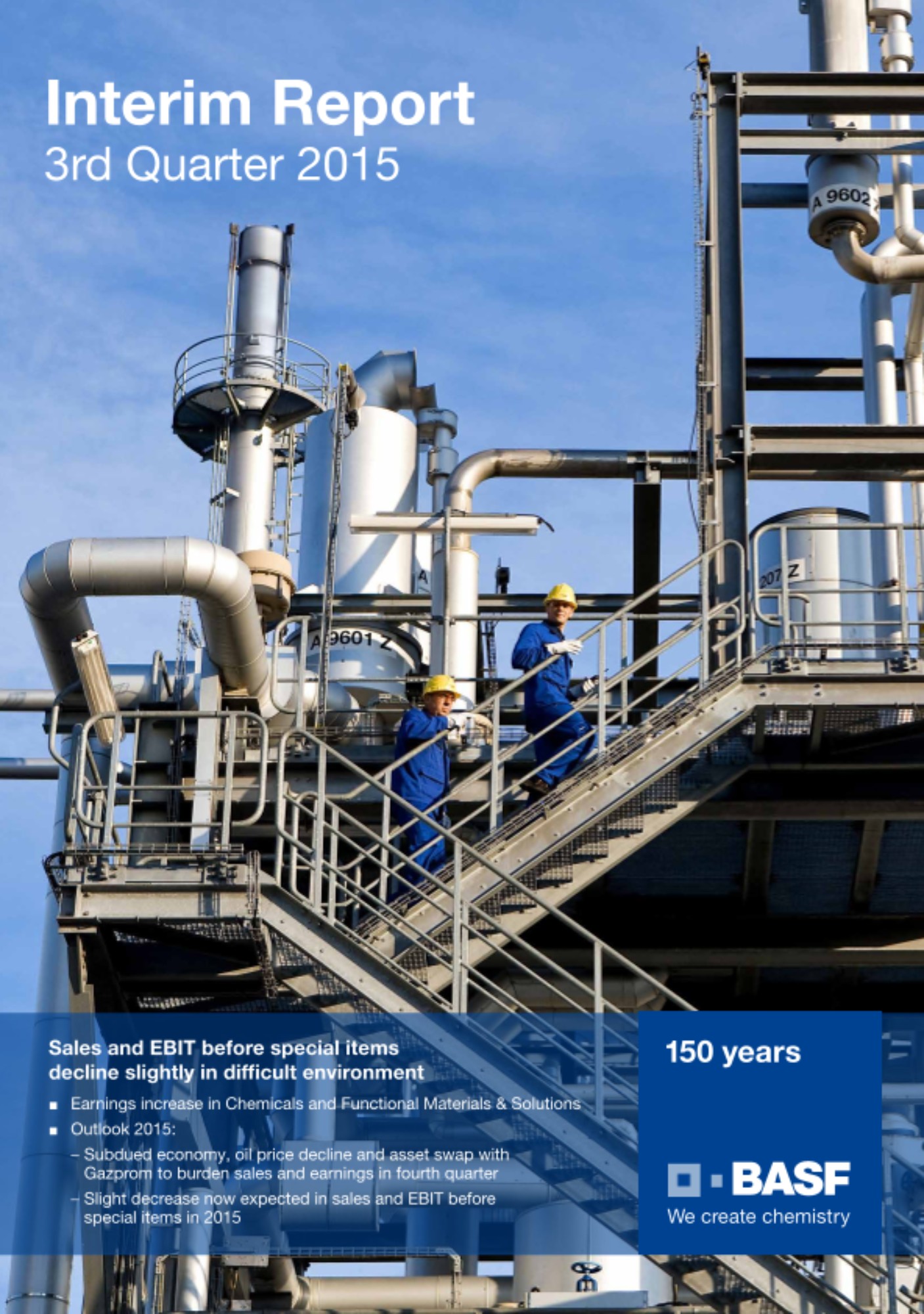 BASF グループが 2015 年の小幅増収予測を達成する見込みは低く、売上高は小幅に減少すると、現在 BASF では予測しています。この予測は、 2015 年第 3 四半期に締結した天然ガス取引・貯蔵事業の売却ならびに原油価格の下落に基づくものです。 BASF は今後も、事業の買収や売却の影響を除いた販売量の増加を目指していきます。