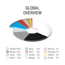 BASF自動車用OEM塗料カラーレポートは、BASFのコーティングス事業部が2023年の世界の自動車生産と乗用車への塗料適用に基づいて作成したデータ分析です。