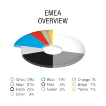 EMEA:国により異なるカラー傾向、無彩色の人気は共通するものの、有彩色の好みは様々