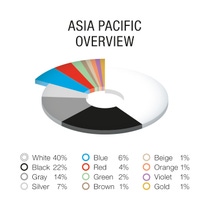 アジア太平洋地域における有彩色は、新しい自動車カラーパレットで主導的地位を維持し、2022年と比較してわずかに増加しました。ナチュラルカラーの人気が高まり、特にグリーンが増加しました。明るいカラー、特に明るいグレー系やシルバーの人気が高まりました。