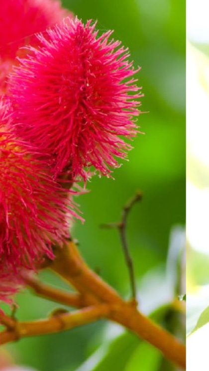 古代マヤ文明の時代からベニノキ種子エキスは、皮膚疾患や発熱などの治癒目的や料理用の着色料やスパイスとして重宝されてきました。その主成分はウロン酸です。最近では抗がん作用、血糖降下作用、抗菌作用、消化作用、抗炎症作用についても研究されています。