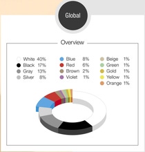 화이트는 48%의 점유율로 여전히 가장 인기 있는 색상이었고, 블랙과 그레이가 그 뒤를 이으며 3년 간 계속 증가하는 추세다.