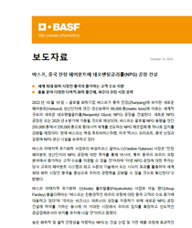 2022년 10월 19일 – 글로벌 화학기업 바스프가 중국 잔장(Zhanjiang)에 위치한 새로운 페어분트(Verbund) 생산단지에 연간 생산능력이 80,000톤(metric tons)에 이르는 세계적 규모의 새로운 네오펜틸글리콜(Neopentyl Glycol, NPG) 공장을 건설한다. 새로운 NPG 공장은 오는 2025년 4분기에 가동될 것으로 예상되며, 바스프는 글로벌 NPG 용량을 연간 255,000톤에서 335,000톤으로 증대시켜 세계를 선도하는 NPG 제조업체 중 하나로 입지를 강화할 예정이다. 현재 바스프는 독일 루트비히스하펜, 미국 텍사스 프리포트, 중국 난징과 길림에 NPG 생산 시설을 보유하고 있다.