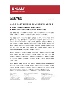바스프는 화학으로 지속가능한 미래를 만들어나가는 글로벌 화학기업이다. 바스프는 경제적 성공뿐 아니라 환경보호와 사회적 책임을 최우선으로 여긴다. 바스프 그룹에는 전 세계적으로 11만1천명 이상의 임직원이 근무하고 있으며, 거의 모든 산업 분야 및 국가에서 고객의 성공을 지원하고 있다. 바스프 그룹은 화학 제품, 원재료, 산업 솔루션, 표면처리 기술, 뉴트리션 & 케어, 농업 솔루션의 6개 분야에서 폭넓은 포트폴리오를 제공하고 있다. 바스프는 2022년 약 873억 유로의 매출을 기록했으며 바스프 주식은 독일 프랑크푸르트(BAS) 및 미국에서 미국주식예탁증서(BASFY)로도 거래되고 있다. 바스프에 대한 보다 자세한 정보는 www.basf.com 에서 확인할 수 있다.