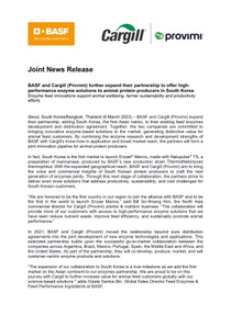 바스프와 카길 프로비미는 2021년, 순수 유통 계약을 넘어 새로운 효소 기술과 응용 분야의 공동 개발로 파트너십을 확대했다. 이러한 파트너십은 아르헨티나, 브라질, 멕시코, 포르투갈, 스페인, 중동 및 아프리카, 미국 전역의 기업 간 성공적인 시장 진출 협업을 기반으로 구축된다. 또한 바스프와 카길 프로비미는 파트너십의 일환으로 고객 중심의 효소 제품 및 솔루션을 공동 개발, 생산, 마케팅 및 판매할 계획이다.
