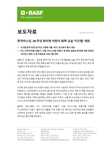 글로벌 화학기업 바스프는1954년 한국에 진출한 이래 모범적 역할을 수행해왔다. 선도적 외국 기업으로서 바스프는 국내 8개의 대규모 생산시설을 보유하고 있다. 또한 수원에 바스프 아태지역 전자소재 사업본부와 아태지역 전자소재 R&D 센터를 운영하고 있으며, 이 외에도 국내 1개의 첨단 소재 솔루션 R&D 센터와 2개의 기술연구소를 두고 있다. 지난 2022년 국내 고객 대상 총 매출액은 약 15억 유로를 기록했으며 2022년 말 기준 1,221 명의 임직원이 국내에 근무하고 있다. 한국 내 바스프에 대한 더 자세한 내용은 http://www.basf.com 에서 확인할 수 있다.