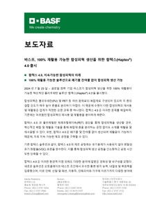 바스프는 화학으로 지속 가능한 미래를 만들어 나가는 글로벌 화학기업이다. 바스프는 경제적 성공 뿐 아니라 환경보호와 사회적 책임을 최우선으로 여긴다. 바스프 그룹에는 전 세계적으로 11만2천명 이상의 임직원이 근무하고 있으며, 대부분의 산업 분야 및 국가에서 고객의 성공을 지원하고 있다. 바스프 그룹은 화학 제품, 원재료, 산업 솔루션, 표면처리 기술, 뉴트리션 & 케어, 농업 솔루션의 6개 분야에서 폭넓은 포트폴리오를 제공하고 있다. 바스프는 2023년 약 689억 유로의 매출을 기록했으며 바스프 주식은 독일 프랑크푸르트(BAS) 및 미국에서 미국주식예탁증권(BASFY)으로도 거래되고 있다. 바스프에 대한 보다 자세한 정보는 www.basf.com 에서 확인할 수 있다.