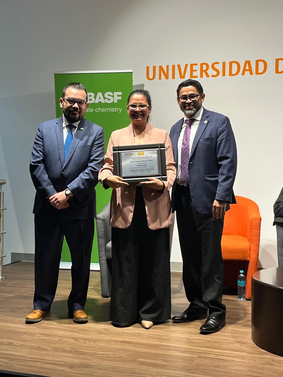 En esta 11° edición del premio BASF-UDLAP Innovar para el Futuro, el primer lugar se lo llevó Mariel Guadalupe Valencia Córdova, doctorante de la Universidad Autónoma del Estado de Hidalgo (UAEH) con el proyecto “Evaluación de las propiedades biológicas de dos variedades de flor de palma para su aplicación en el diseño de un suplemento alimenticio”, en la categoría Seguridad Alimentaria.