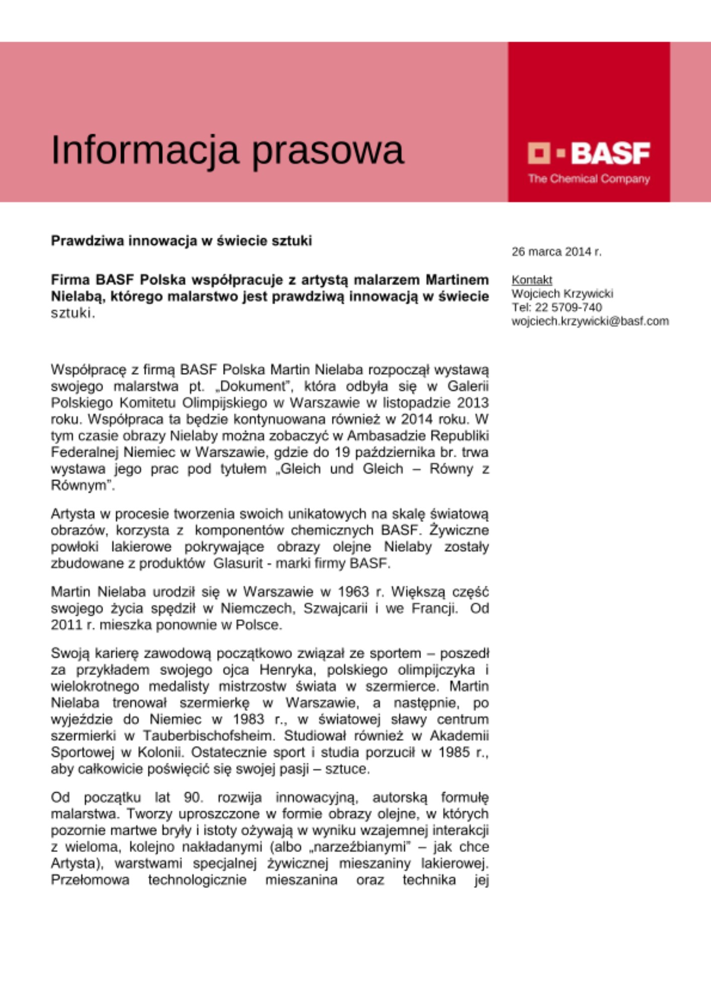 Firma BASF Polska współpracuje z artystą malarzem Martinem Nielabą, którego malarstwo jest prawdziwą innowacją w świecie sztuki.
