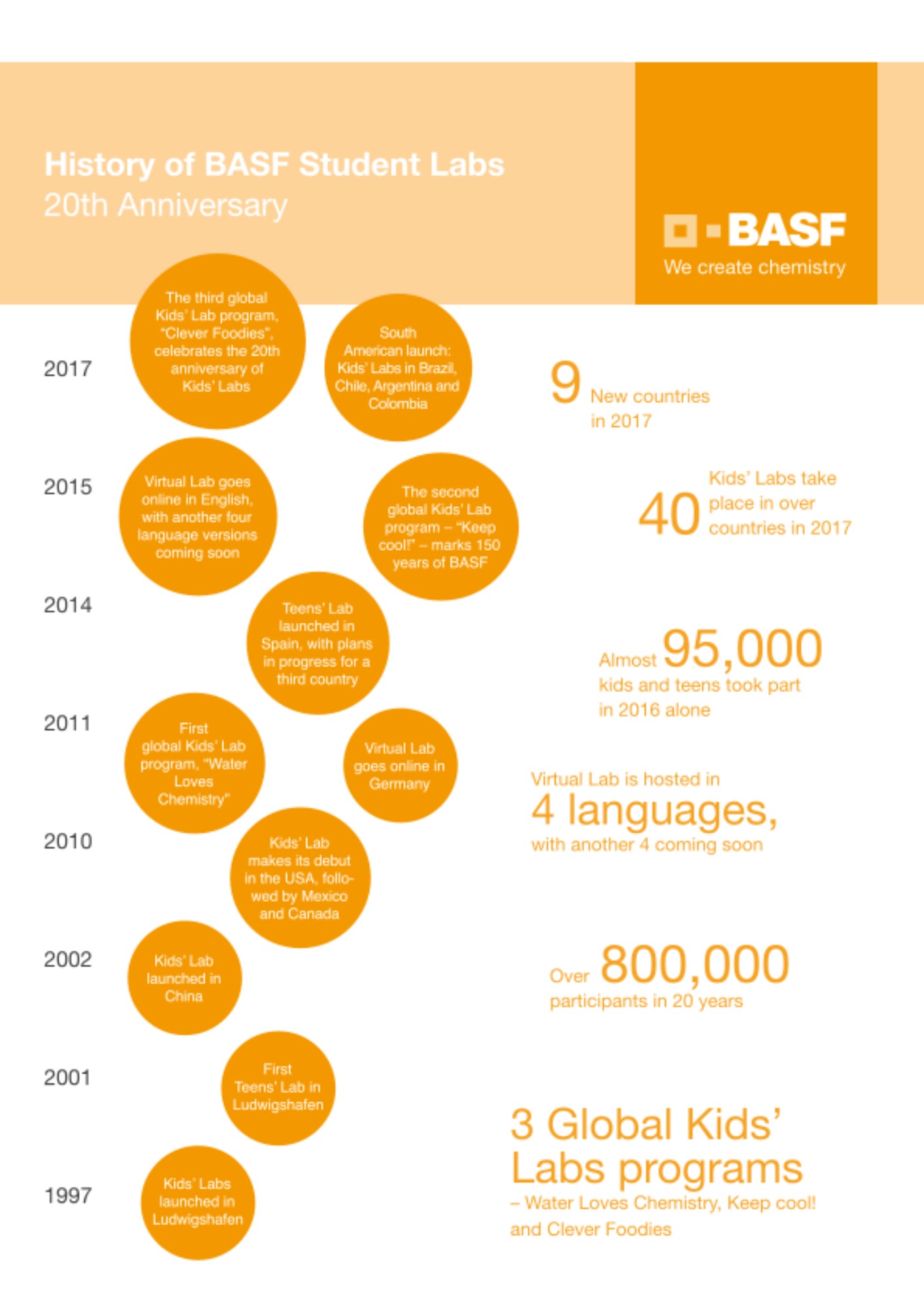 - Pentru a sărbători aniversarea de 20 de ani a programului Kids’ Lab, BASF lansează un nou set de experimente – ”Clever Foodies”. Acestea abordează un subiect de interes pentru toată lumea - nutriția sănătoasă - și este programat să se desfășoare în peste 30 de țări din întreaga lume.