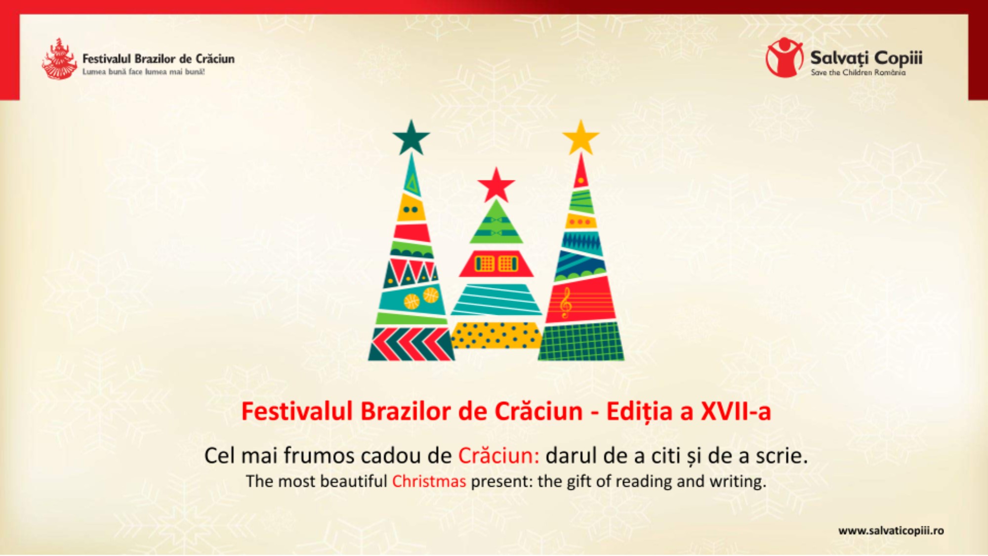 Ca în fiecare an, BASF a fost alături de Salvați Copiii sprijinind Festivalul Brazilor de Crăciun, un eveniment dedicat strângerii de fonduri pentru prevenirea abandonului școlar în randul copiilor din medii defavorizate. Grație sprijinului obținut în cadrul acestui eveniment, peste 2.000 de copii vor beneficia în 2017 de programele Grădiniță Estivală, Școală după Școală și A Doua Șansă.