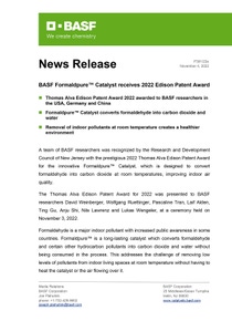 BASF Formaldpure™ Catalyst receives 2022 Edison Patent Award
