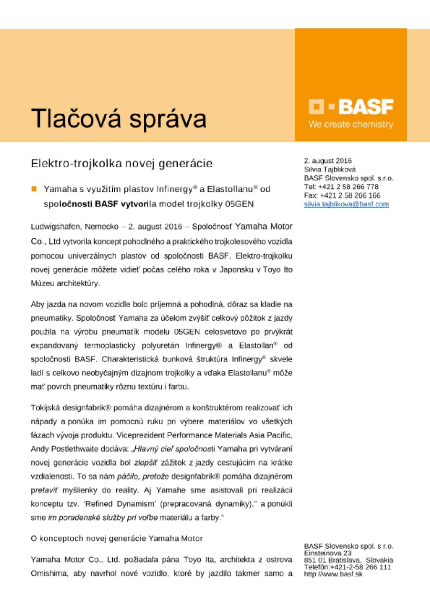 - Yamaha s využitím plastov Infinergy® a Elastollanu® od spoločnosti BASF vytvorila model trojkolky 05GEN