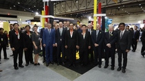 (Right) Delegation from Ministry of Industry led by Deputy Minister received the Recommendations Report for the Environment Management in Map Ta Phut Industrial Estate from Dr. Monika Betz and Dr. Josef Schorr, the experts from the Environmental Monitoring Center of BASF SE. The cooperation between Thailand and BASF is a part of the government’s development plan for the environment management at the Map Ta Phut Industrial Estate in Rayong.