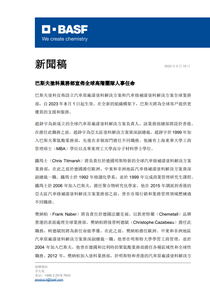 在巴斯夫,我們創造化學新作用——追求可持續發展的未來。我們將經濟上的成功、社會責任和環境保護相結合。巴斯夫在全球約有 111,000 名員工,為遍佈全球各類產業客戶的成功做出貢獻。我們的產品分屬六大業務領域:化學品、材料、工業解決方案、表面處理技術、營養與護理、農業解決方案。2022 年巴斯夫全球銷售額約 873 億歐元。巴斯夫的股票在法蘭克福證券交易所上市(交易代號:BAS),並在美國發行存託憑證(交易代號:BASFY)。欲瞭解更多資訊,請上網: www.basf.com。
