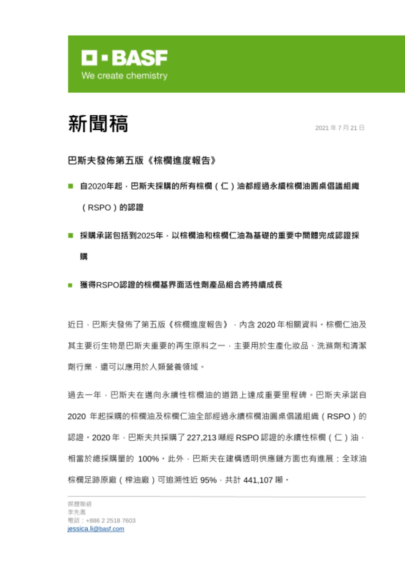 請點選此處獲取完整版《棕櫚進展報告》及更多關於巴斯夫相關承諾的資訊。