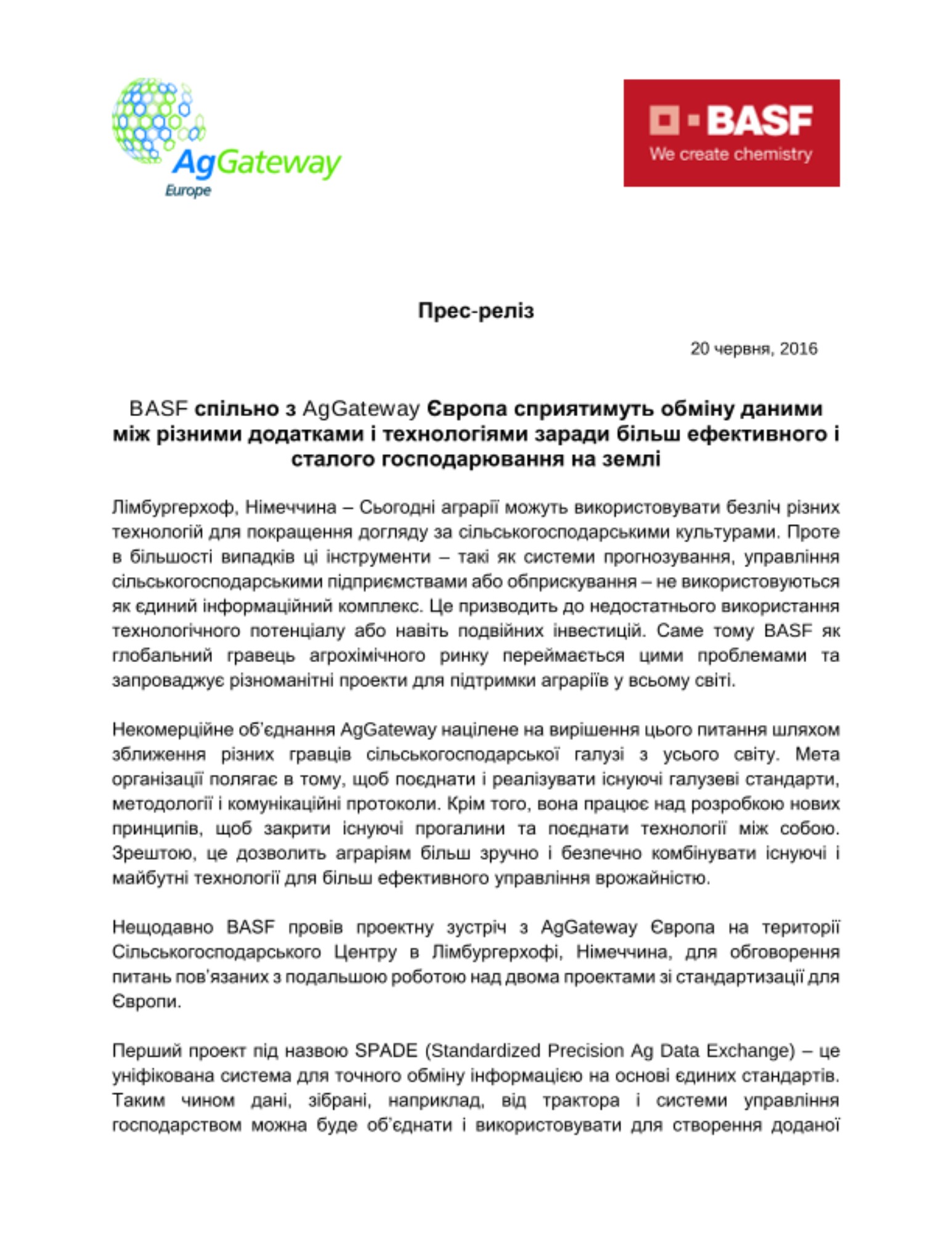 BASF спільно з AgGateway Європа сприятимуть обміну даними між різними додатками і технологіями заради більш ефективного і сталого господарювання на землі